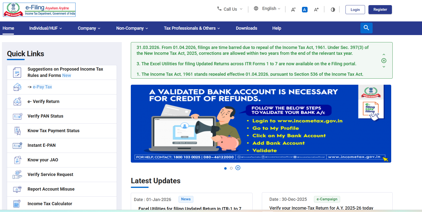 👉 सबसे पहले Income Tax e-filing portal पर जाएं। 👉 ‘Register’ या ‘Login’ करें (अगर पहले से अकाउंट है)।